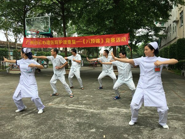 每天早晨7点30分,广州白云心理医院的住院病区都会传来一阵悠扬的音乐声,原来是患者们在做“八段锦”(一种康复体操)。据广州白云心理医院护理部主任刘忠芳介绍,每天晨间,护士们都会带领患者做八段锦或晨间操。正所谓“一日之计在于晨”,晨起锻炼可以增强体质,改善精神状况,有益于患者快速康复。