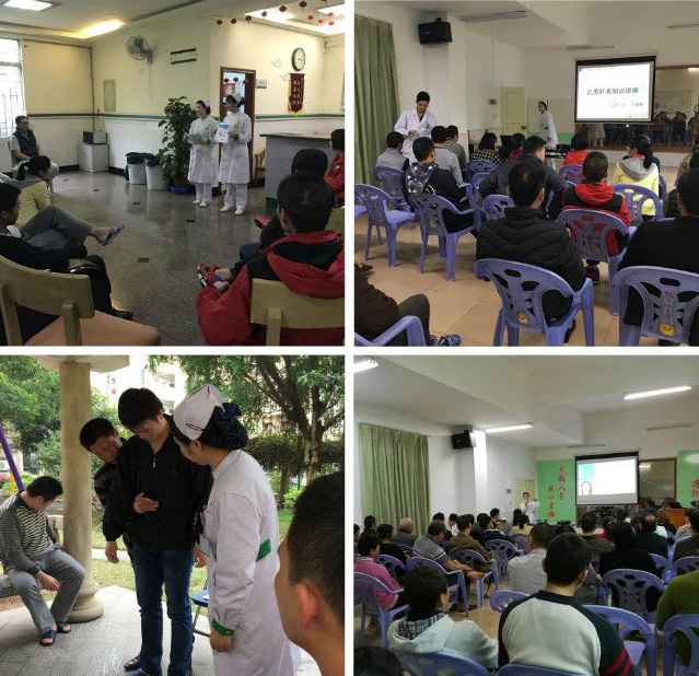 为了让患者学习健康常识,提升自理、自救能力,广州白云心理医院会定期举办健康讲座。讲座的内容丰富多样,包括“噎食的急救”这类突发事件的处理,“乙型肝炎知识讲座”等疾病常识宣教,还有各类心理讲座。